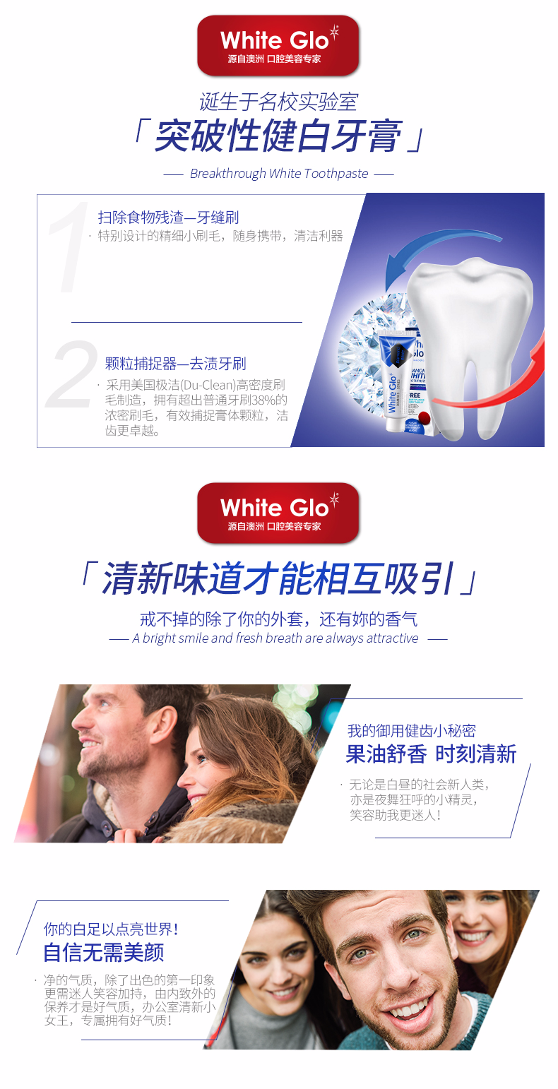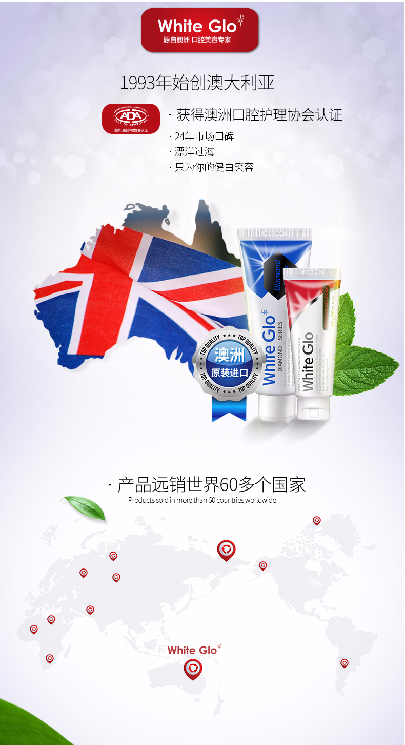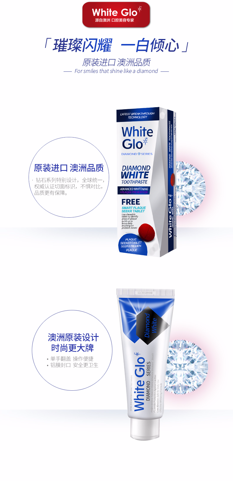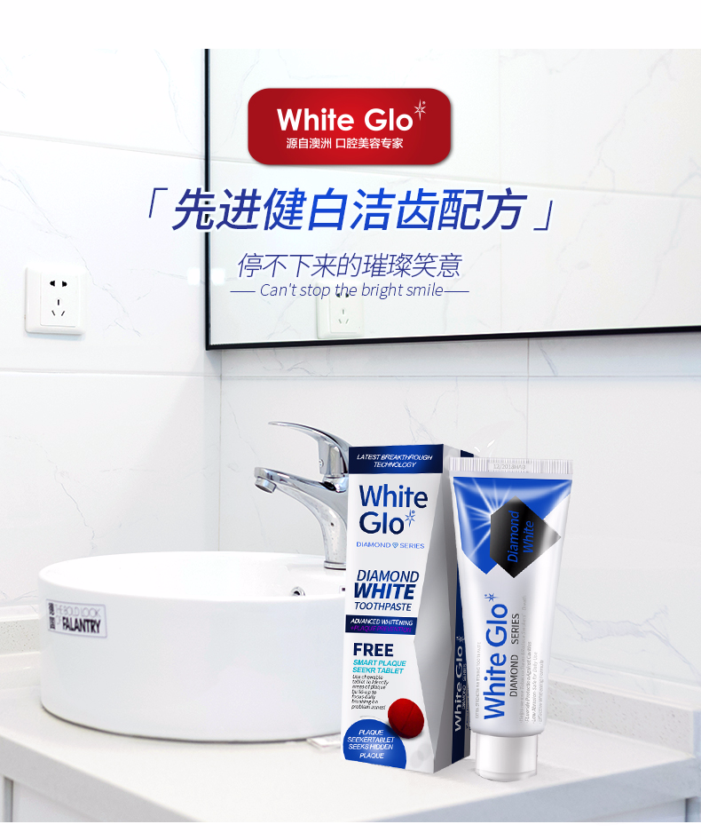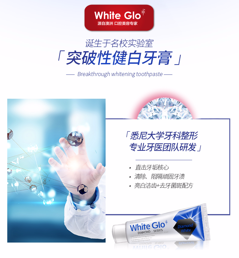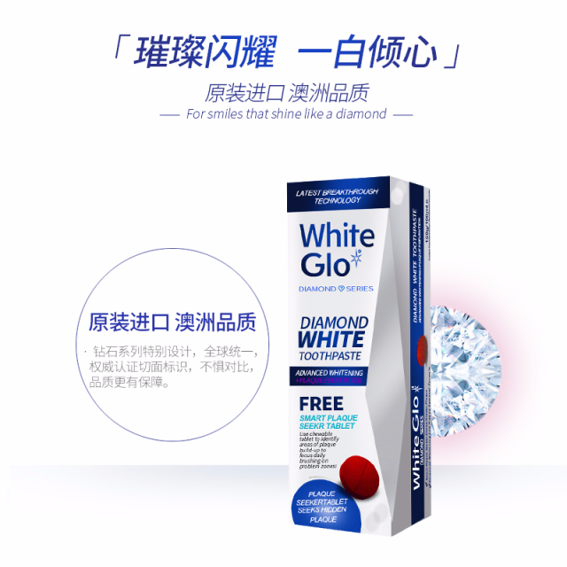 澳洲原装进口Whiteglo惠宝钻石健白牙膏牙科级护理5分钟便捷健白7天见证效果