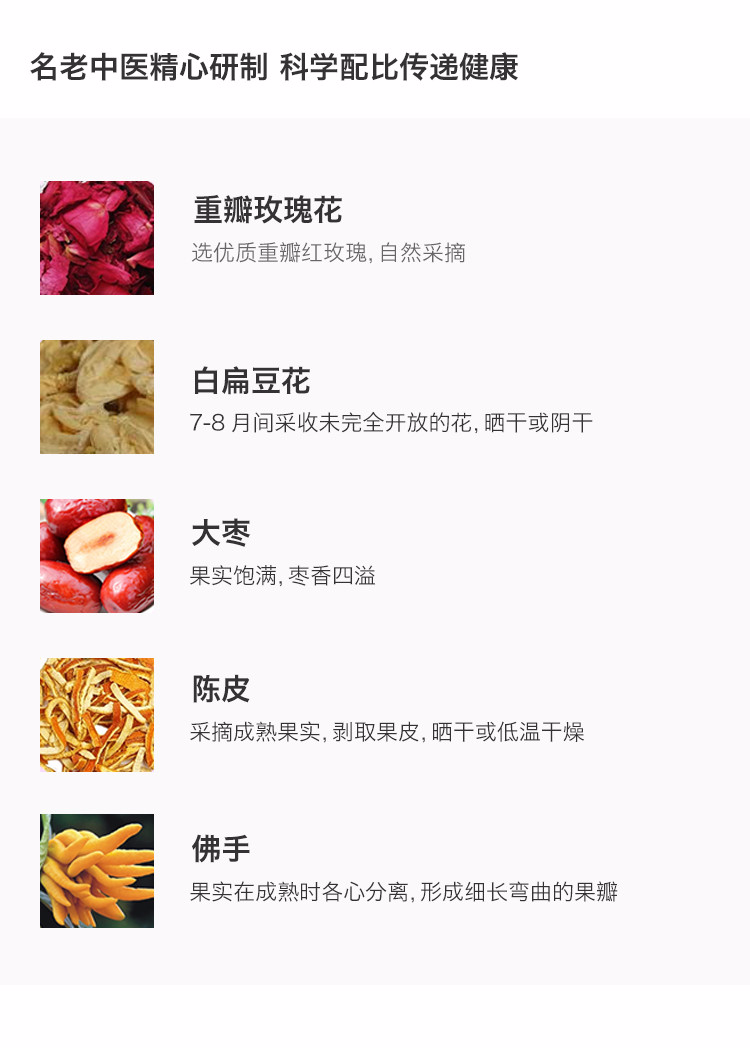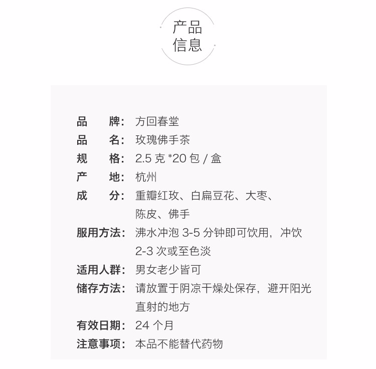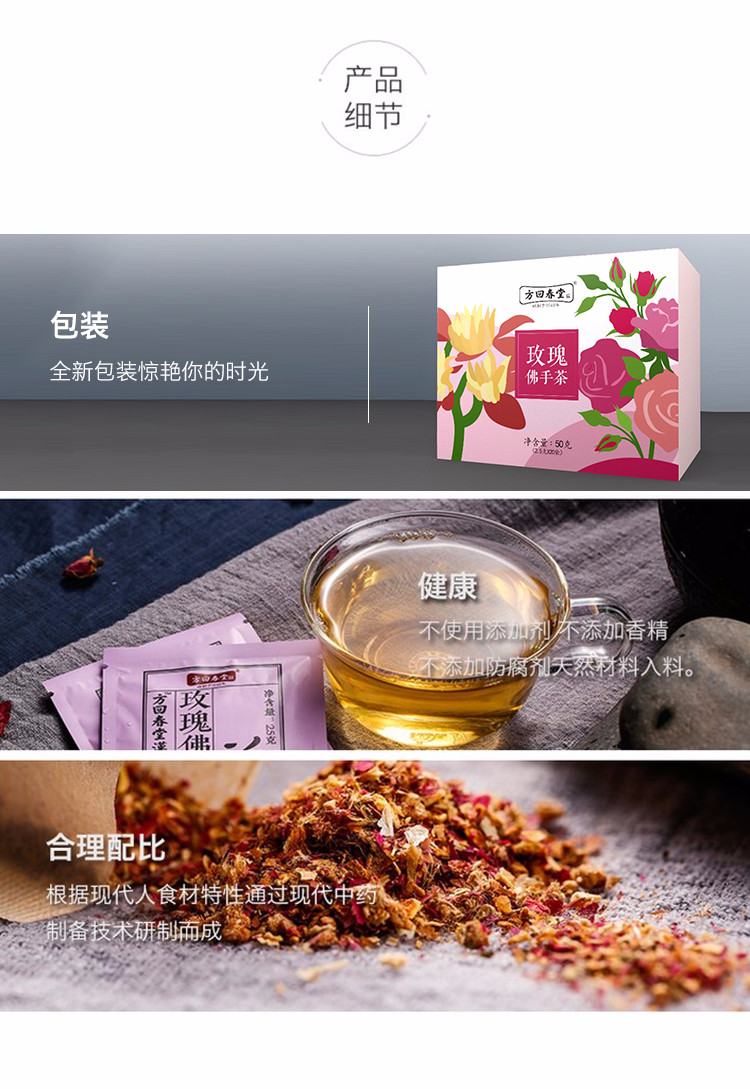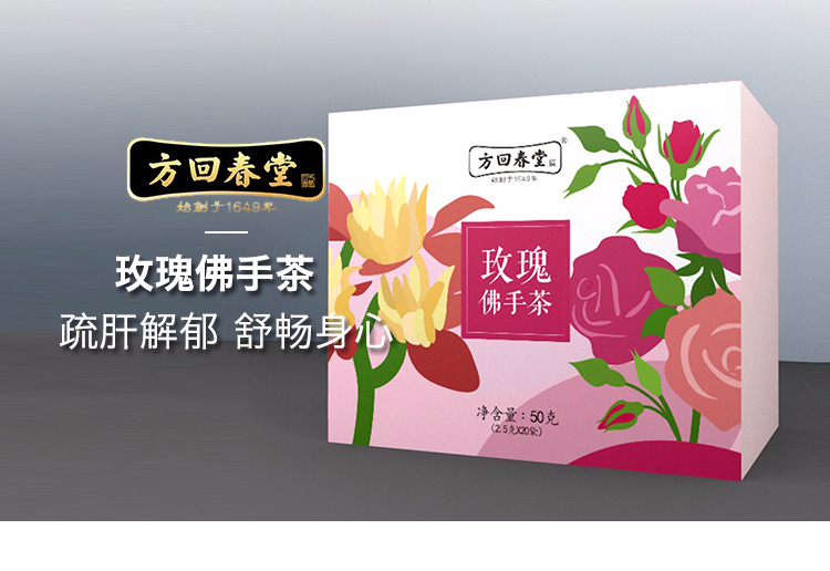 【方回春堂】玫瑰佛手茶2.5克*20袋 疏肝解郁 调经舒痛 喝出好心情 经前经后饮用调理